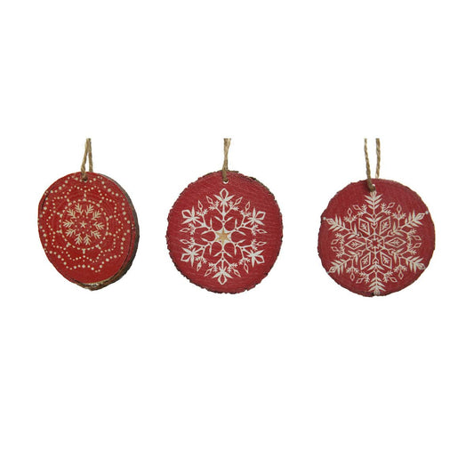 Log Slice Red & White Nordic Folk Art Christmas Hanging Decorations