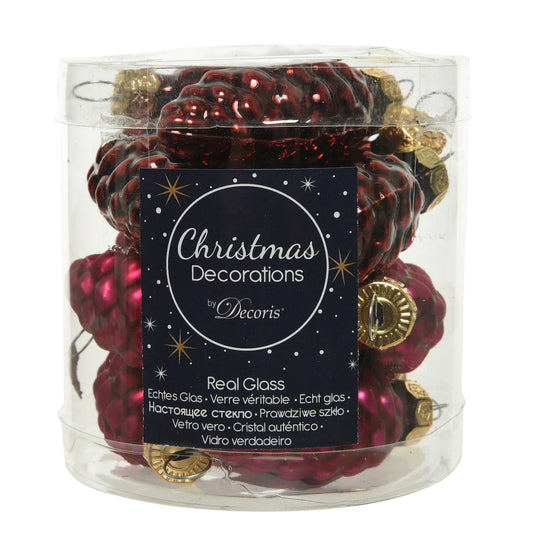 Oxblood Red Pinecone Glass Baubles - Gloss & Matt finish set of 12 - 6cm