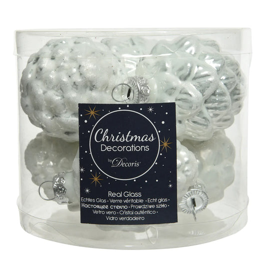 White Pinecone Glass Baubles - Gloss & Matt finish set of 12 - 6cm