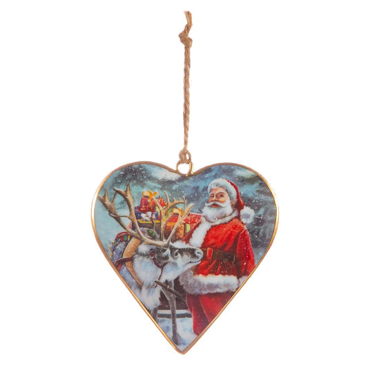 Vintage Santa Heart Hanging Decorations (Large)- Set of 3